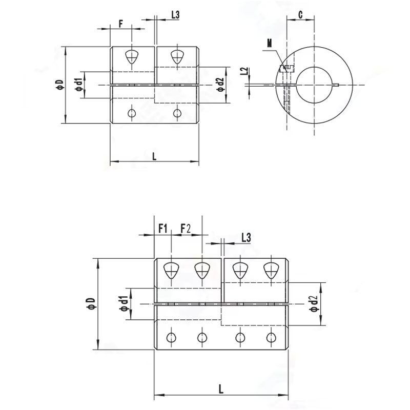 Our aluminum rigid coupling represents the pinnacle of precision power transmission, engineered for applications requiring absolute synchronization and zero backlash. This high-strength rigid coupling is manufactured from premium aluminum alloy, offering an exceptional balance of lightweight construction and robust performance. Specifically designed for stepper motors, servo motors, and asynchronous motors, this clamping coupling ensures perfect torque transmission without any power loss or angular displacement. With a versatile inner diameter range of 4-60mm and torque capacity up to 220 N.M, this rigid shaft coupling provides reliable connectivity for precision automation equipment, CNC machinery, and robotic systems. The clamping screw tightening mechanism guarantees secure installation without damaging shafts, making it an ideal choice for applications demanding high rigidity and precise positioning.