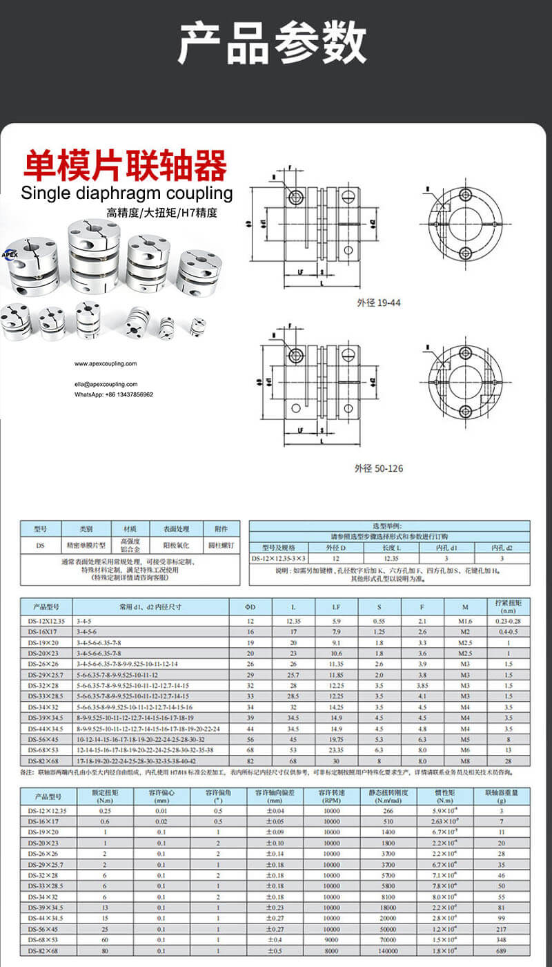 In the world of precision motion control, the coupling diaphragm serves as the critical element that determines the performance, reliability, and accuracy of flexible couplings. This precision-engineered component, typically manufactured from thin stainless steel, provides the perfect balance of torsional stiffness and flexibility, enabling zero-backlash torque transmission while accommodating misalignment. The DS/DL series coupling diaphragm from Apex Coupling represents the pinnacle of this technology, featuring industrial-grade 304 stainless steel diaphragms combined with 7075 aerospace aluminum alloy hubs to deliver exceptional performance in stepper motor, servo motor, and high-precision automation applications.