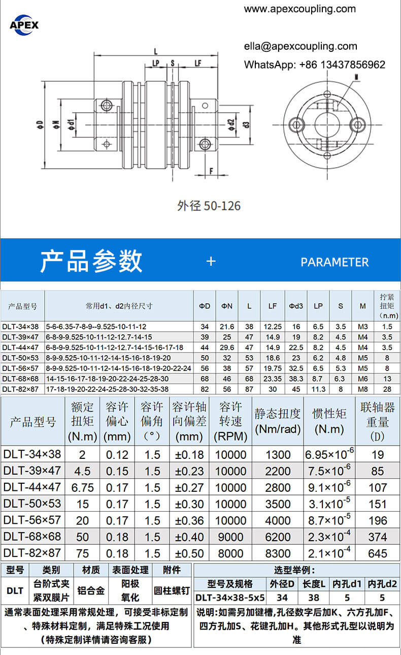 Diaphragm Coupling Manufacturers | DLT Series High-Precision Aluminum Alloy Diaphragm Coupling - Apex Coupling