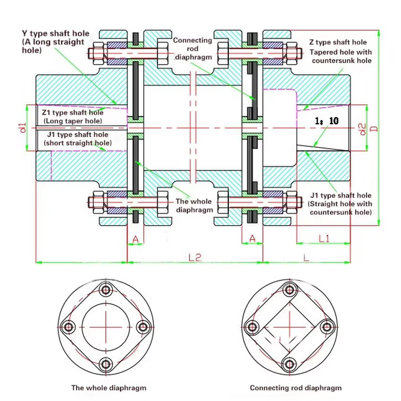 Double Diaphragm Design: Multiple stainless steel diaphragms for superior flexibility and torque transmission