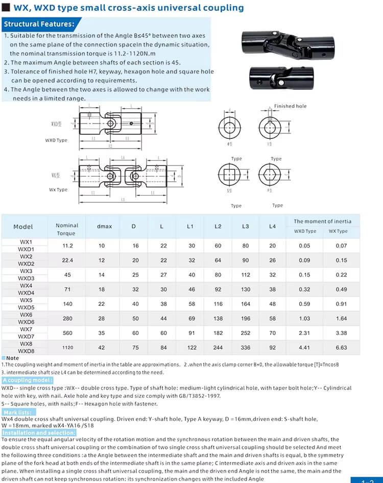 | Bore Size | 10–42 mm Double Universal Joint |
