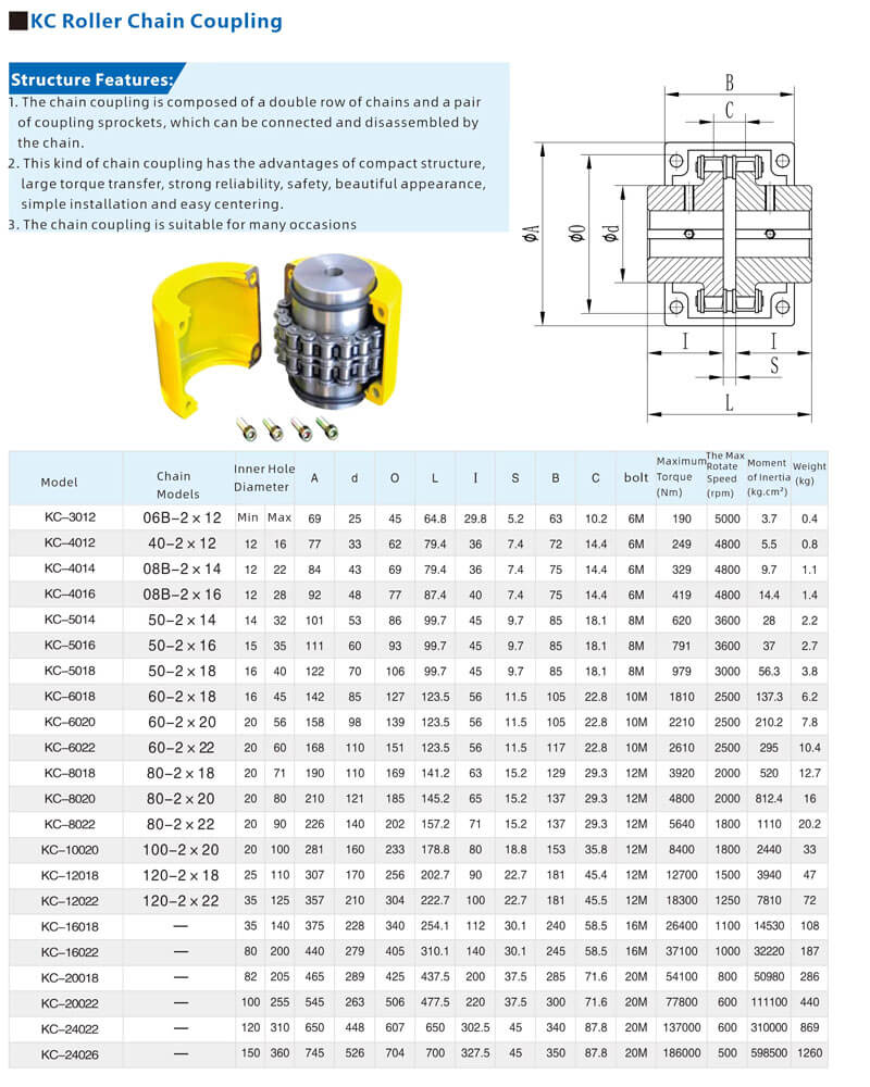 Customizable KC-6022 Flexible Steel Roller Chain Coupling with Steel Outer Case Shaft OEM