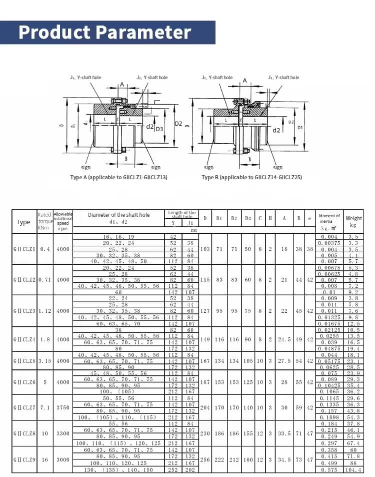| Allowable Torque Range | 400–12000 N·m Gear Type Coupling |