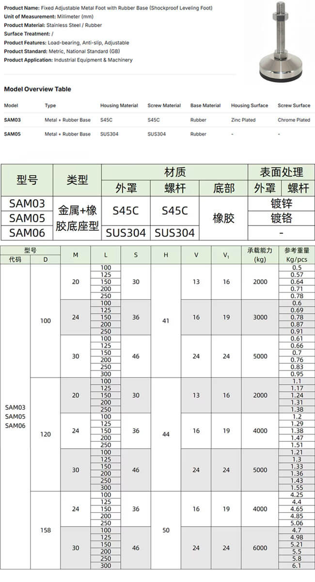 The key feature that elevates this from a simple foot to a performance leveling mount is its integrated rubber-metal base. The bottom of the mount is fitted with a thick, high-quality rubber pad. This pad serves three essential functions: it provides excellent anti-slip properties to prevent equipment from shifting during operation; it acts as a shockproof layer to absorb vibrations and impacts, protecting both the machine and the floor; and it prevents scratches and damage to flooring surfaces.