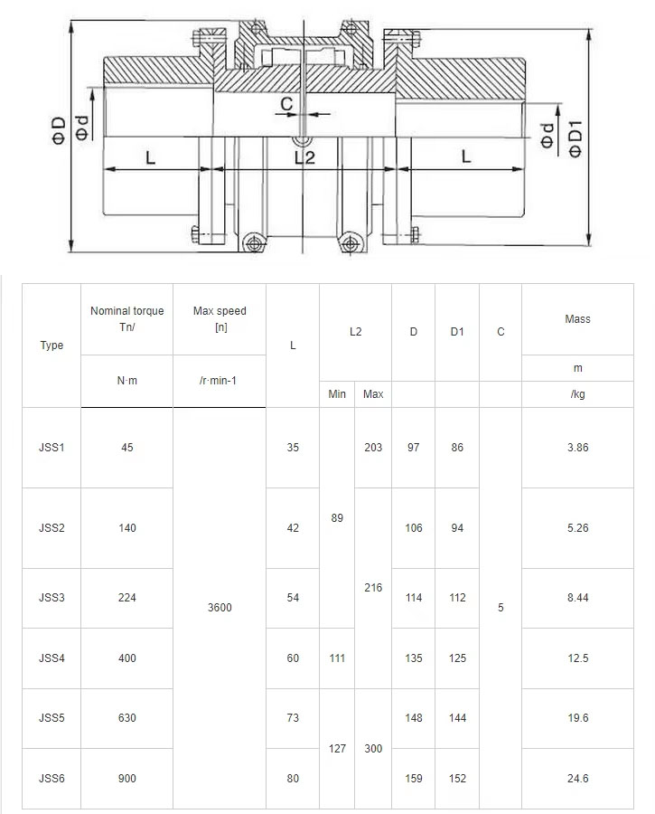 The JSS Type Grid Coupling represents advanced engineering in flexible power transmission technology, specifically designed to handle the demanding requirements of industrial applications. This flexible shaft coupling utilizes a unique grid element that engages with precisely machined grooves in two flanged hubs, creating a robust connection that efficiently transmits torque while accommodating angular, parallel, and axial shaft misalignments.