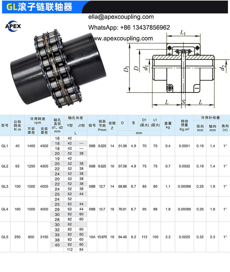 A: Both are roller chain couplings. KC and GL are common model designations with minor dimensional differences. We can provide both – please specify your required shaft diameters and torque.
