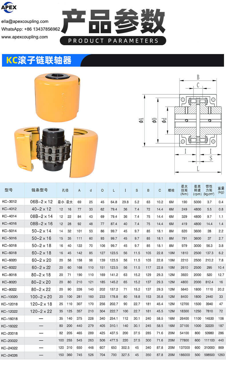 The KC/GL series is a roller chain coupling (also called chain gear coupling) with a protective guard. Made of 45# forged steel with case‑hardened teeth and high‑quality brand chain, it offers high torque transmission, zero backlash, and long service life.