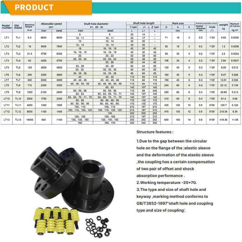 LT GB RoHS Flexible Bushed Pin Flex Coupler Elastic Sleeve Shock-Absorbing Pin Shaft Coupling for Water Pump Fan OEM Customized