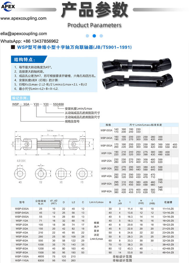 Model SeriesWSP Telescopic Cross-Shaft universal couplings types